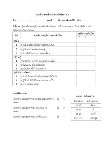 แบบสังเกตพฤติกรรมของนักเรียน ป.1