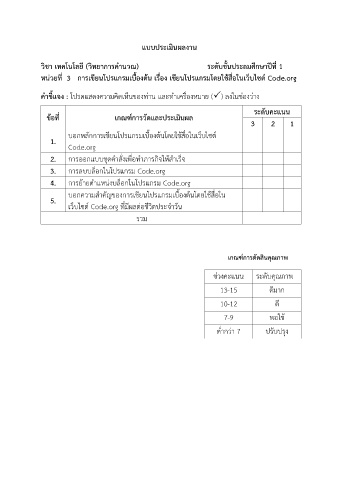 ข้อท ี่ เกณฑ์การวัดและประเมินผล