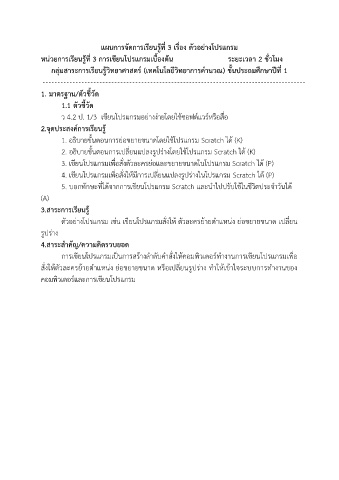 แผนการจัดการเรียนรู้ที่ 3 เรื่อง ตัวอย่างโปรแกรม