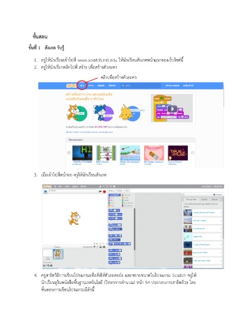 1. ครูให้นักเรียนเข้าไปที่ www.scratch.mit.edu ให้นักเรียนสังเกตหน้าแรกของเว็บไซต์นี้