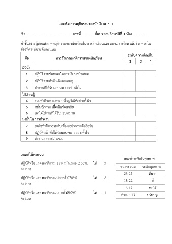 แบบสังเกตพฤติกรรมของนักเรียน ป.1