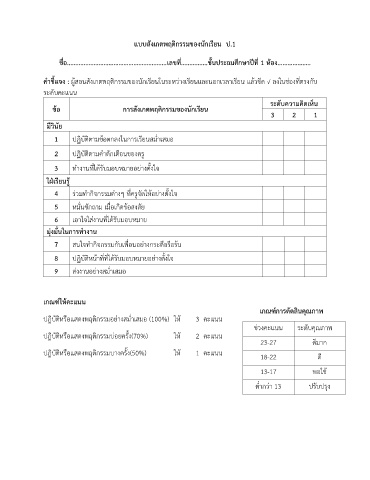 แบบสังเกตพฤติกรรมของนักเรียน ป.1