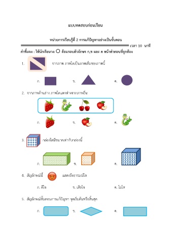 ค าชี้แจง : ให้นักเรียนวง  ล้อมรอบตัวอักษร ก,ข และ ค หน้าคาตอบที่ถูกต้อง