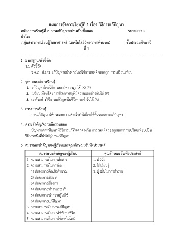 แผนการจัดการเรียนรู้ที่ 1 เรื่อง วิธีการแก้ปัญหา