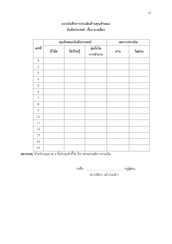แบบบันทึกการประเมินด้านคุณลักษณะ