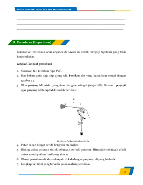 3. Ukur panjang tali mistar yang akan dianggap sebagai jari-jari (R). Gunakan penjepit