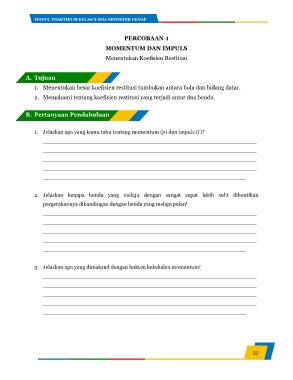1. Jelaskan apa yang kamu tahu tentang momentum ( ) dan impuls ( )?