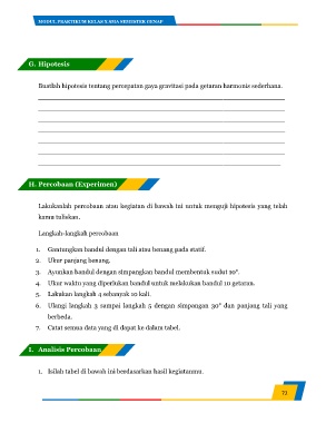 Buatlah hipotesis tentang percepatan gaya gravitasi pada getaran harmonis sederhana.