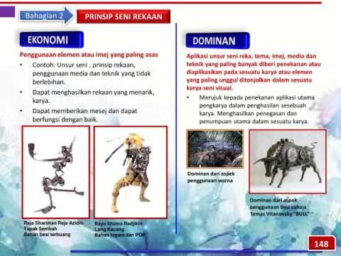 • Contoh: Unsur seni , prinsip rekaan, teknik yang paling banyak diberi penekanan atau
