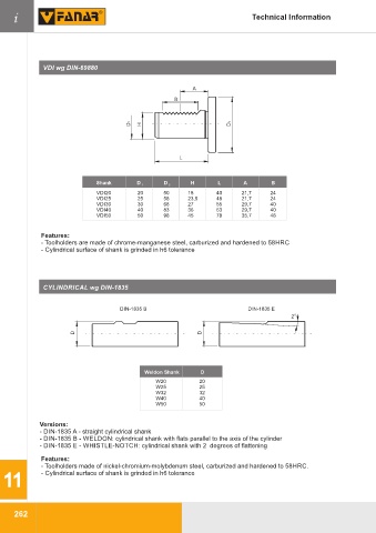 - Toolholders made of nickel-chromium-molybdenum steel, carburized and hardened to 58HRC.