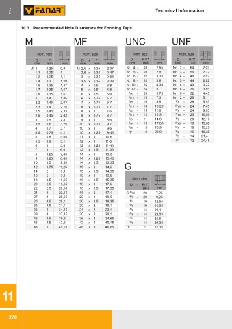 10.3. Recommended Hole Diameters for Forming Taps