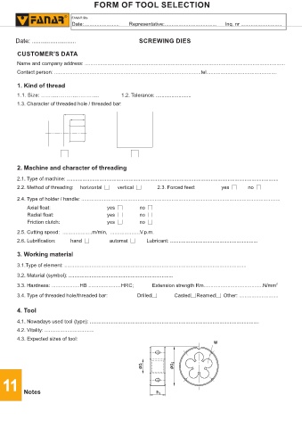 2.2. Method of threading: horizontal vertical 2.3. Forced feed: yes no