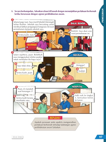 A. Secara berkumpulan, lakonkan situasi di bawah dengan menunjukkan perlakuan berhemah