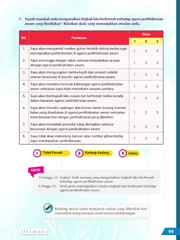 C. Sejauh manakah anda mengamalkan tingkah laku berhemah terhadap agensi perkhidmatan