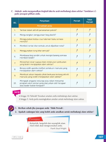 C. Adakah anda mengamalkan tingkah laku ke arah melindungi alam sekitar? Tandakan (Ö)