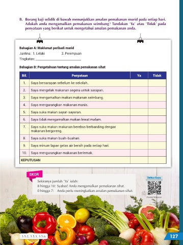 Bahagian B: Pengetahuan tentang amalan pemakanan sihat