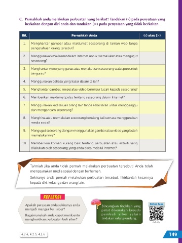C. Pernahkah anda melakukan perbuatan yang berikut? Tandakan (Ö) pada penyataan yang