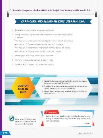 C. Secara berkumpulan, jalankan aktiviti kuiz ‘Jelajah Ilmu’ tentang konflik identiti diri.