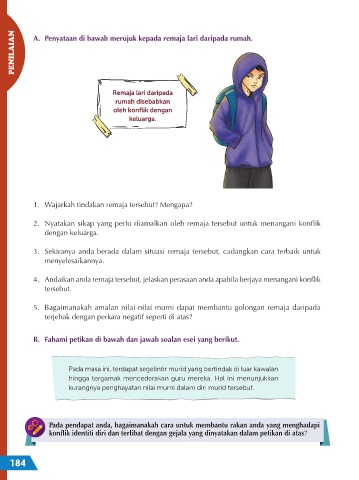 PENILAIAN A. Penyataan di bawah merujuk kepada remaja lari daripada rumah.