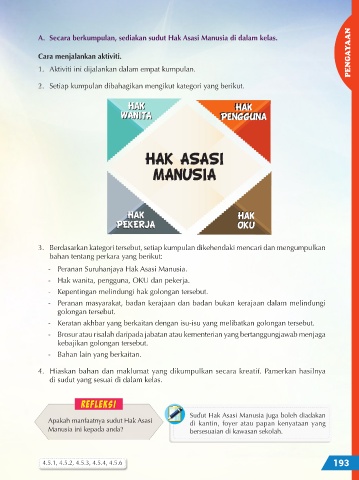 A. Secara berkumpulan, sediakan sudut Hak Asasi Manusia di dalam kelas.