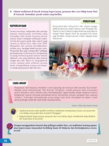 B. Fahami maklumat di bawah tentang kepercayaan, perayaan dan cara hidup kaum Iban