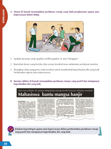 PENILAIAN A. Situasi di bawah menunjukkan perlakuan remaja yang tiada penghayatan agama atau
