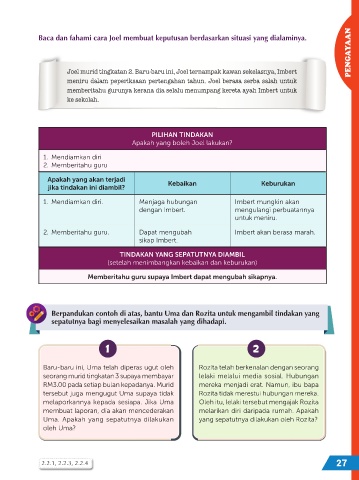 Berpandukan contoh di atas, bantu Uma dan Rozita untuk mengambil tindakan yang