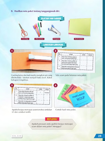 B. Hasilkan nota poket tentang tanggungjawab diri.