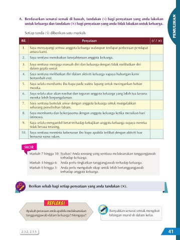untuk keluarga dan tandakan (´) bagi penyataan yang anda tidak lakukan untuk keluarga.