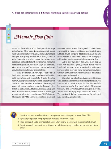 A. Baca dan fahami memoir di bawah. Kemudian, jawab soalan yang berikut.