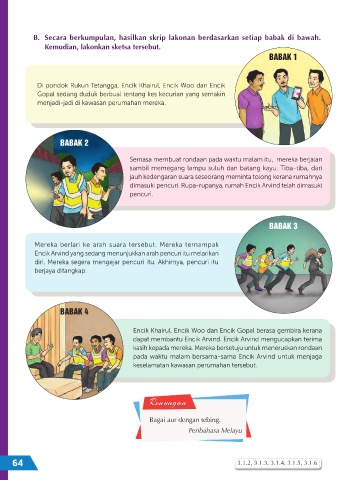 B. Secara berkumpulan, hasilkan skrip lakonan berdasarkan setiap babak di bawah.