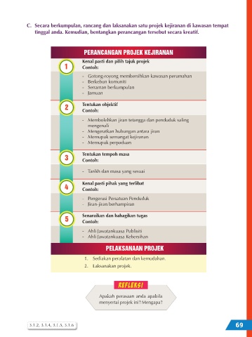 C. Secara berkumpulan, rancang dan laksanakan satu projek kejiranan di kawasan tempat