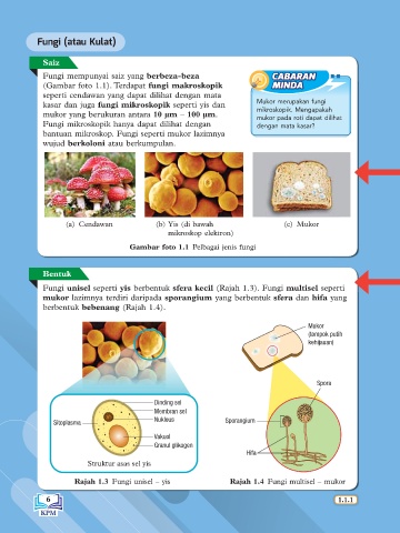 Fungi unisel seperti yis berbentuk sfera kecil (Rajah 1.3). Fungi multisel seperti