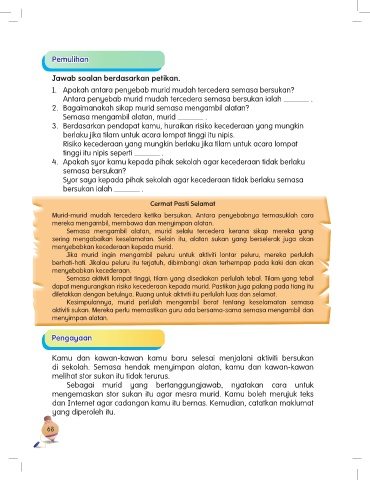1. Apakah antara penyebab murid mudah tercedera semasa bersukan?