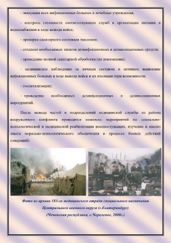 инфекционных больных в ходе вывода войск и их изоляция (при возможности