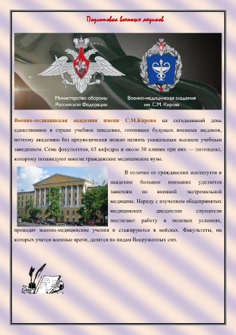 единственное в стране учебное заведение, готовящее будущих военных медиков,