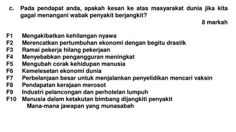 c. Pada pendapat anda, apakah kesan ke atas masyarakat dunia jika kita