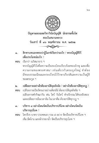 ปัญหาและเฉลยวิชาวินัยบัญญัติ นักธรรมชั้นโท