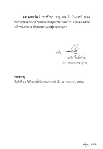 อันดับท่ ๑๑ ได้รับแต่งต้งเป็นกรรมการใหม่ เม่อ ๑๑ พฤษภาคม ๒๕๖๑