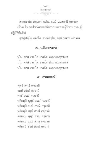 สฺวากฺขาโต ภควตา ธมฺโม, ธมฺม นมสฺสามิ (กราบ)