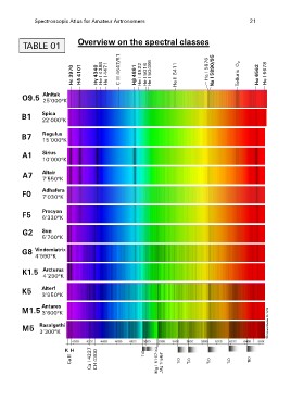 TABLE 01 Overview on the spectral classes