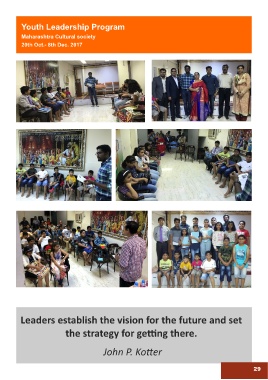 Youth Leadership Program Maharashtra Cultural society 20th Oct.- 8th Dec. 2017 Leaders establish the vision for the future and set the strategy for getting there. John P. Kotter 29