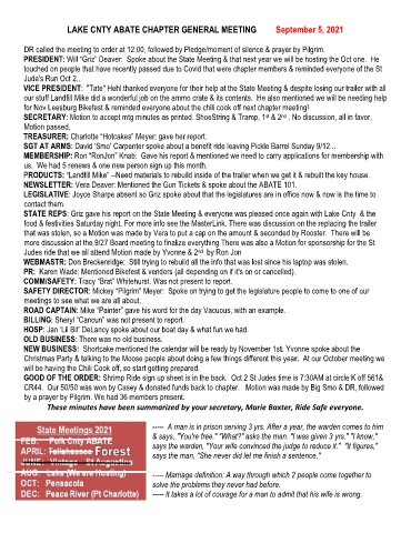 LAKE CNTY ABATE CHAPTER GENERAL MEETING September 5, 2021