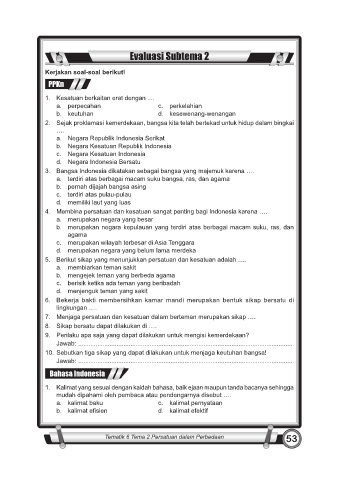 Tematik 6 Tema 2 Persatuan dalam Perbedaan 53