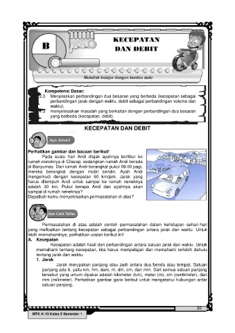 yang melibatkan tentang kecepatan sebagai perbandingan antara jarak dan waktu. Untuk