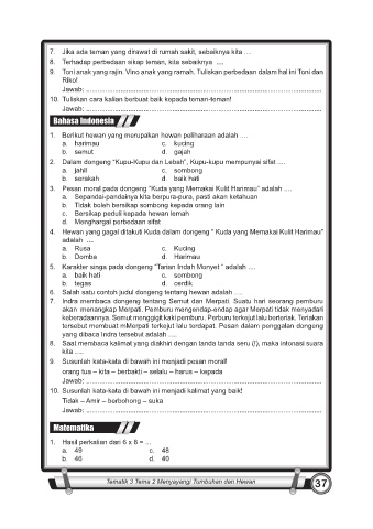 Tematik 3 Tema 2 Menyayangi Tumbuhan dan Hewan 37