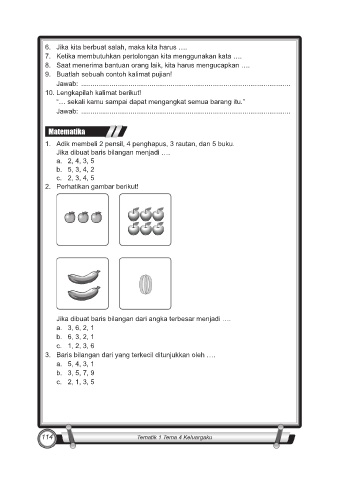 1. Adik membeli 2 pensil, 4 penghapus, 3 rautan, dan 5 buku.