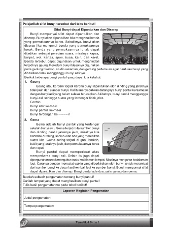 Pelajarilah sifat bunyi tersebut dari teks berikut!