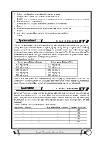 kering. Tadi ayah membelikan dua bungkus jagung kering. Setiap bungkus berisi 1.500 biji