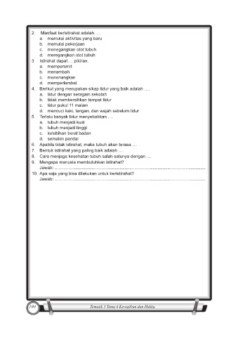 2. Manfaat beristirahat adalah ....